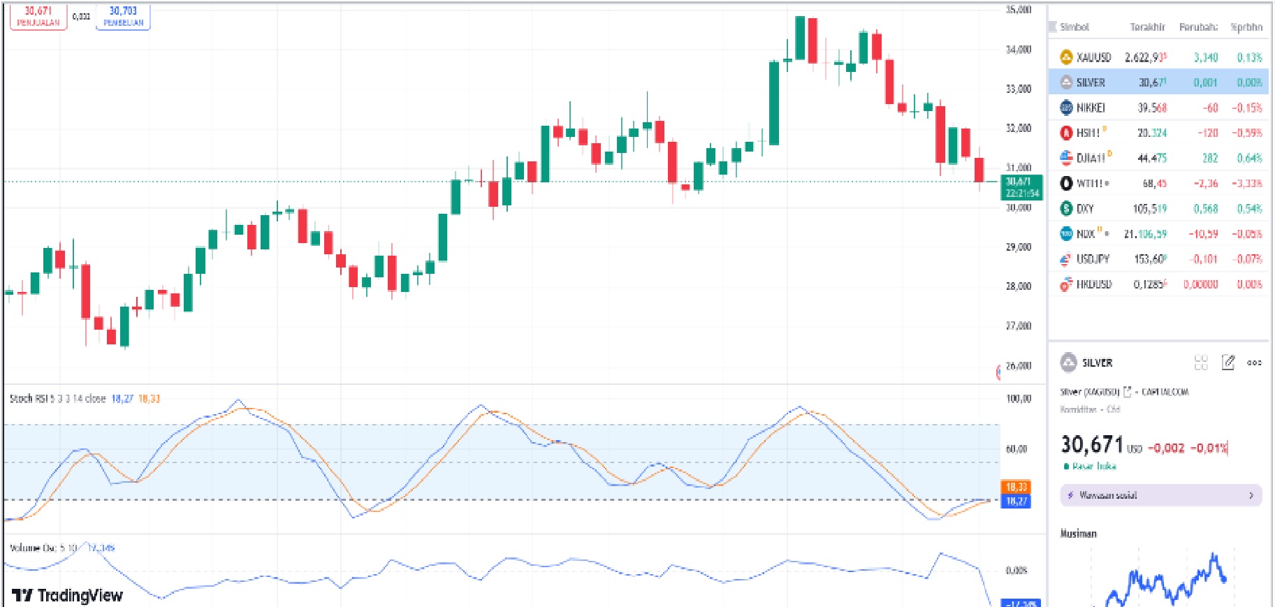 Harga perak saat ini berada pada level $30.671/ Toz.