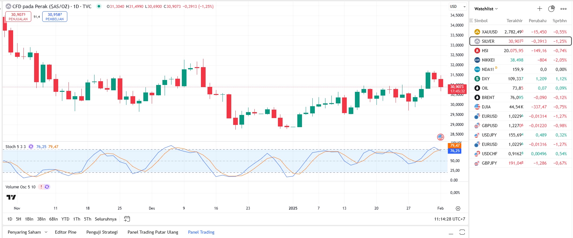 Pada saat tulisan ini dibuat, Harga Perak berada pada $30.907